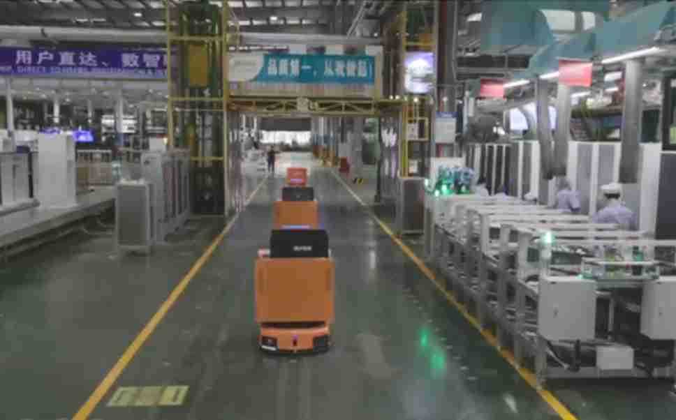 为车载冰箱物流配送打造的智能解决方案,,包含产中物流通过潜伏举升AMR搬运至线边,,,产后成品物流智能仓储,,,流程包含产中物流智能齐套入库,,线边安灯叫料AMR智能配送至线边,,,成品入库、、出库,,,,通过无人堆高车机器人,,,智能仓储管理替代人工作业管理,,,,实现更高存储、、、、更高效率、、、更具柔性化的解决方案。。